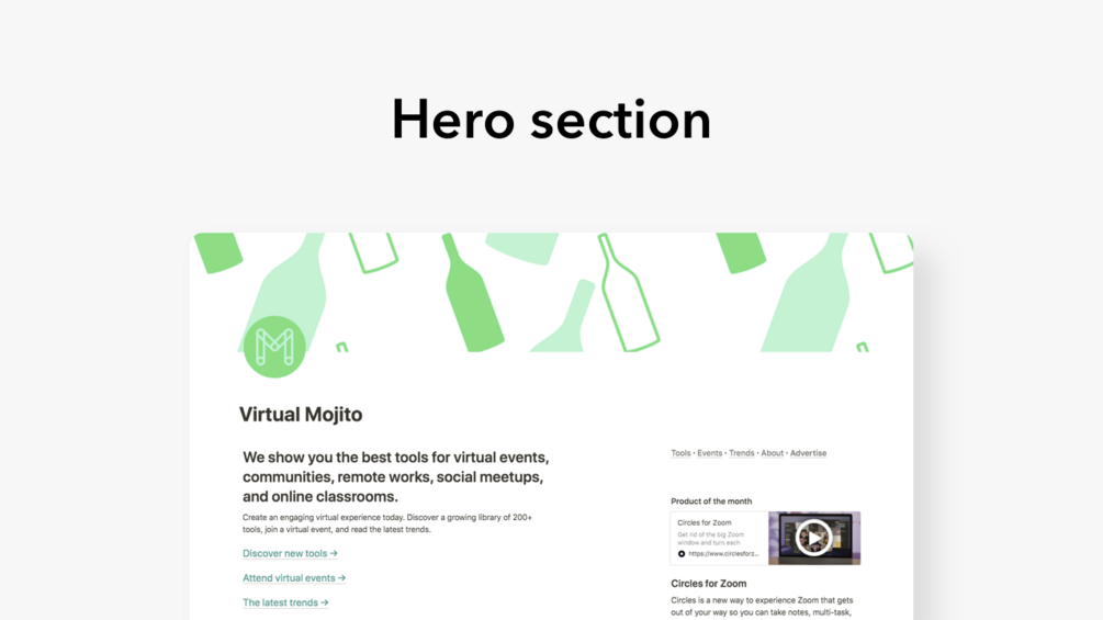 Virtual Mojito website built with Notion